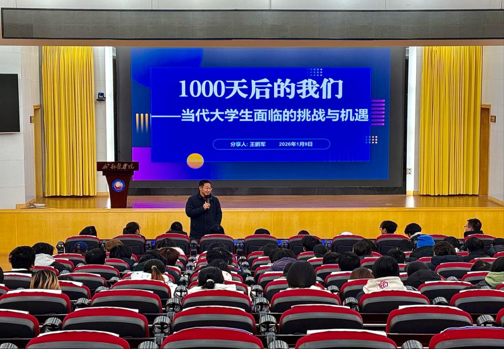 1月9日,由员工工作部(处)指导、古天乐代言太阳集团138主办的“1000天后的我们——当代老员工面临的挑战与机遇”主题班会在学术报告厅举行。辅导员王鹏军与2025级全体员工共同探讨如何实现老员工的成长与发展。
